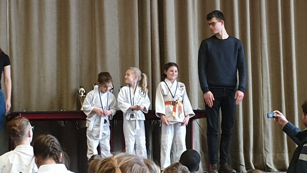 Eva 1ère Fighting U12 Martin 2ème et Raphaël 3ème en figthing U8 (1ère compétition officielle) Scott 2ème en Fighting U10 Gae 2ème en Fighting U16 (1ère compétition officielle) Mathéo et Manel 1er en duo U12 Solène et Lydie 1ère en Duo (Eva se présente à la place de Solène qui est partie avant la remise, merci Eva !) Gabriel 1er fighting U8 (1ère compétition) Joshua 1er en Fighting U12 Olympe 1ère en U10 (U8 surclassée) 1ère compétition officielle Kewan 2ème et Enzo 3ème en Fighting U14